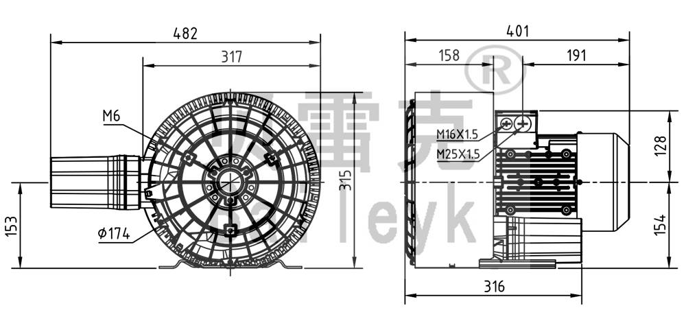 最大風(fēng)量:150m3/h 最大正壓:420mbar 最大負(fù)壓:330mbar 防護等級:IP55 噪音:66db 重量:27Kg |