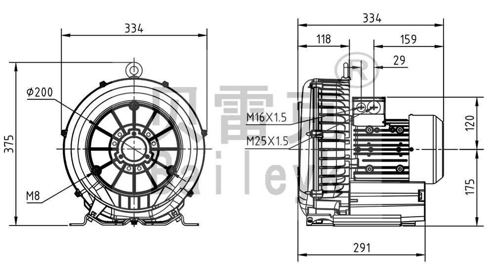最大風(fēng)量:270m3/h 最大正壓:110mbar 最大負(fù)壓:120mbar 防護(hù)等級(jí):IP55 噪音:65db 重量:23Kg |