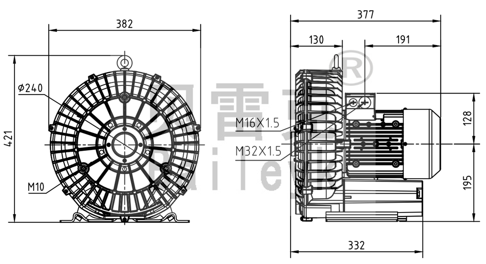 最大風(fēng)量:318m3/h 最大正壓:190mbar 最大負(fù)壓:190mbar 防護(hù)等級:IP55 噪音:69db 重量:31Kg |